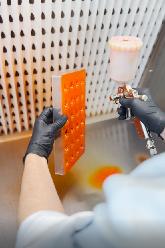 L’ARIA, la cabine de flocage conçue pour répondre aux besoins des laboratoires exigeants. Elle propose un système d’extraction puissant pour maintenir un espace de travail propre, exempt de substances et de poussières générées lors de la décoration des moules.