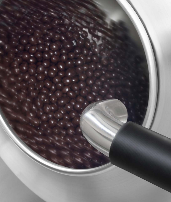Idéale pour l’enrobage sucré ou salé : amandes, noisettes, pralines, dragées tendres, riz soufflé, noix de cajou, cacahouètes, etc